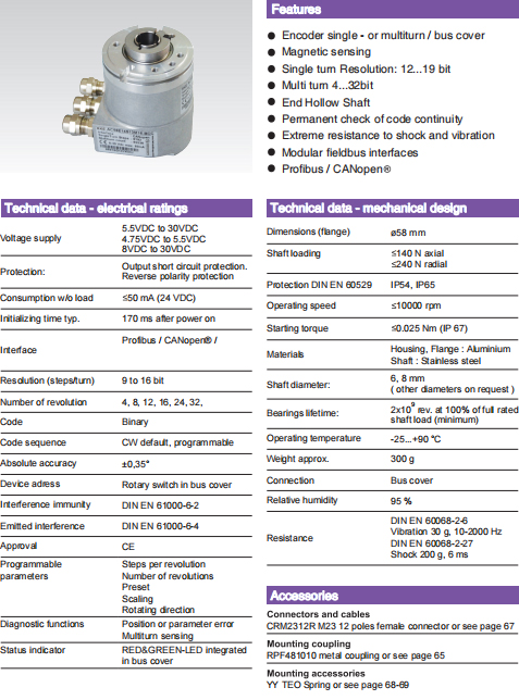 | ○ | 接口:現(xiàn)場總線 / CANopen®/ | ○ | 分辨率(脈沖數(shù)/圈):9 至 16 位 | |||